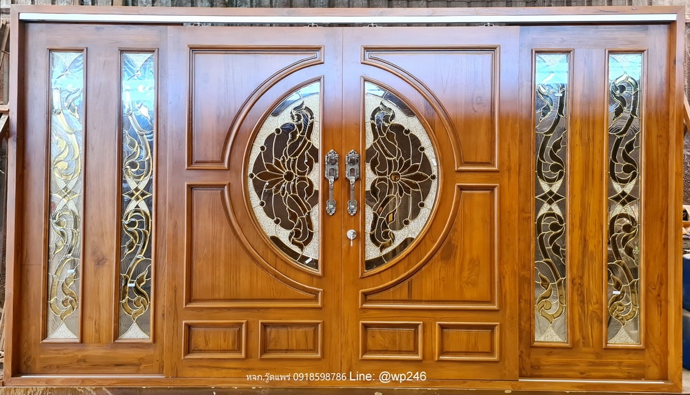 ประตูไม้หน้าบ้านกระจกนิรภัย บานเปิดใหญ่