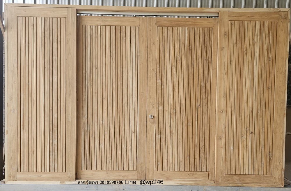 ประตูหน้าบ้านไม้สักบานเลื่อน 4 ชิ้น BB135 ประตูไม้สัก ราคา 17,000 บาท ทำสี 22,000 บาท