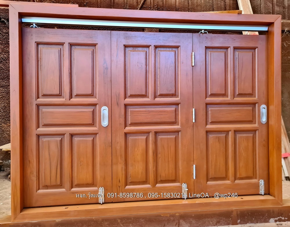 ประตูบานเลื่อนไม้สัก 80×200 คู่กลาง 9,000 บาท BB247