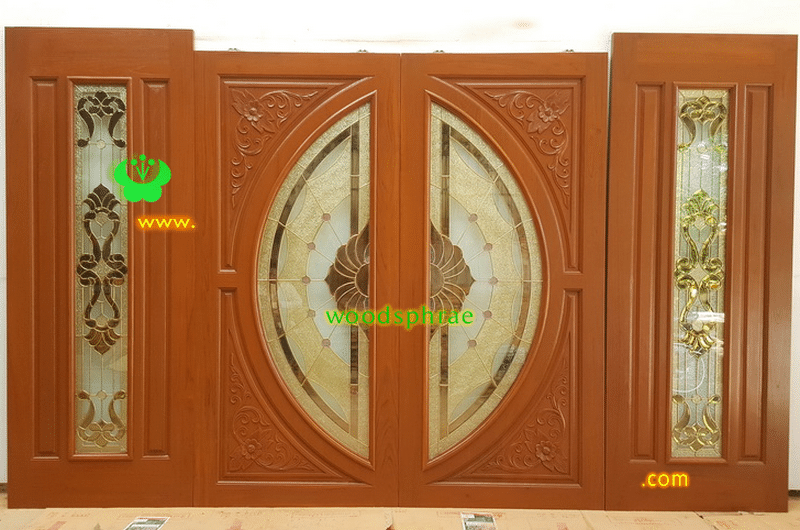 ประตูไม้สักกระจกนิรภัย
