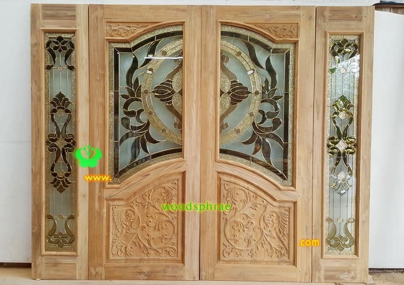 ประตูไม้สักกระจกนิรภัย