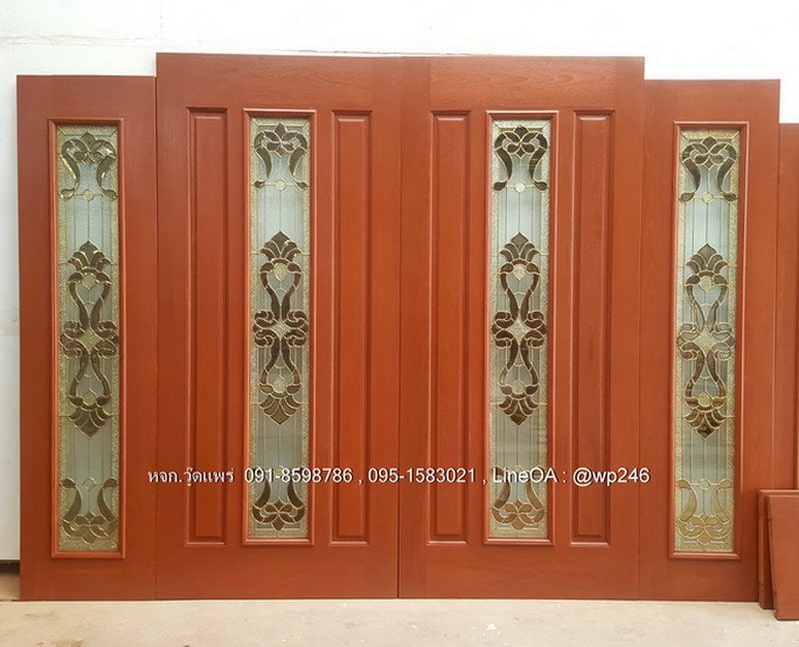 ประตูไม้สักกระจกนิรภัย ขนาด 80*200 เกรดA สอบถามราคา