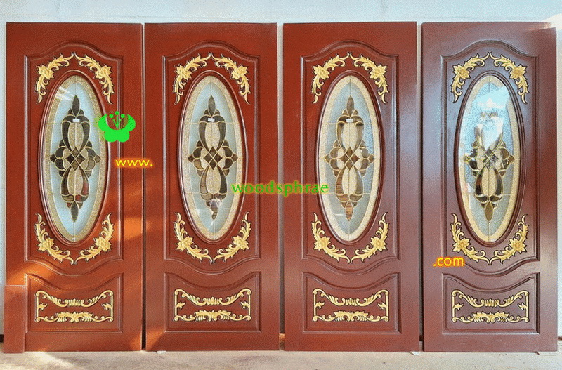 ประตูไม้สักกระจกนิรภัย