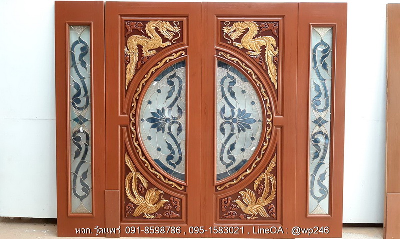 ประตูไม้สักกระจกนิรภัย คู่กลาง 80*200 เกรดB+ สอบถามราคา คู่ข้าง 40*200 เกรดB+ สอบถามราคา