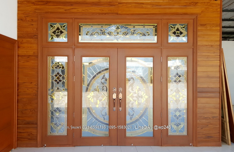 ประตูไม้สักกระจกนิรภัย