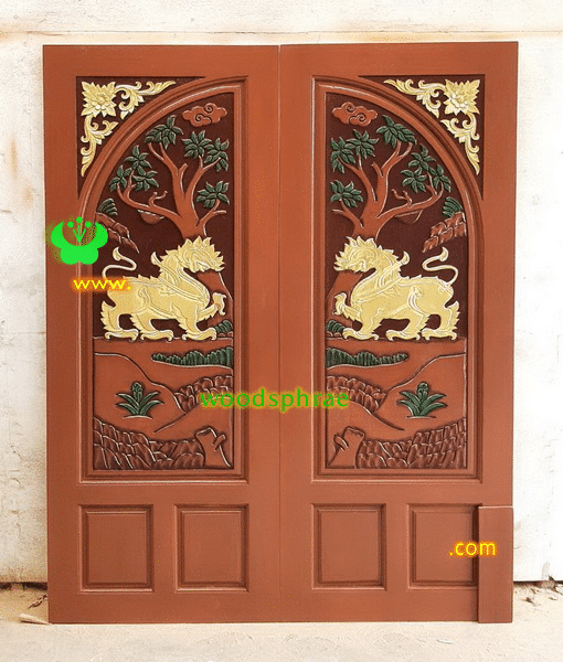 ประตูไม้สักบานคู่ ขนาด 80*200