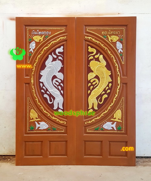 ประตูไม้สักบานคู่ ขนาด 80*200