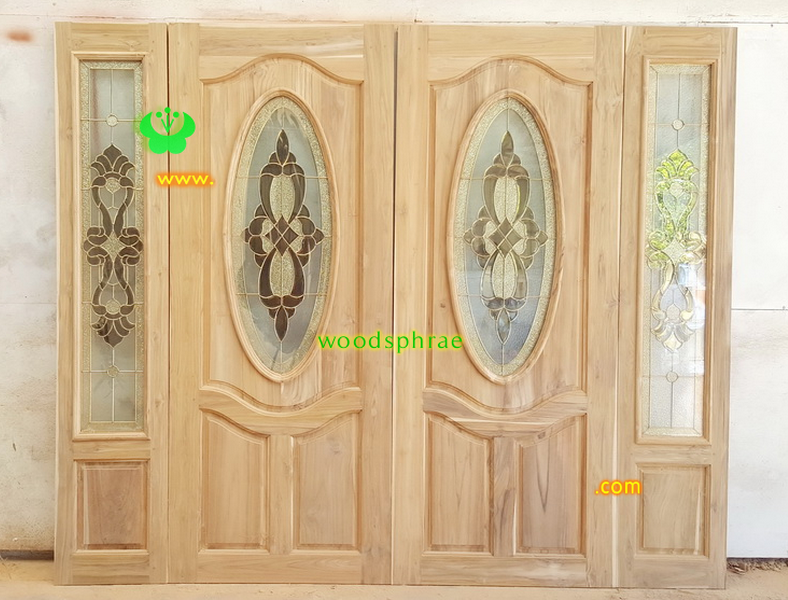 ประตูกระจกนิรภัยไม้สัก มีให้เลือกทั้งไม้สักอบแห้ง เกรด B+ หรือ ไม้สักเก่า