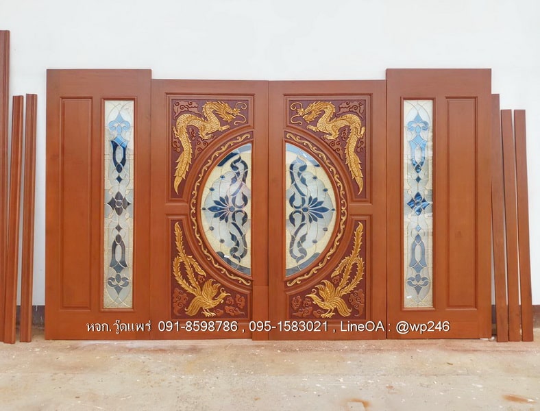 ประตูไม้สักกระจกนิรภัย