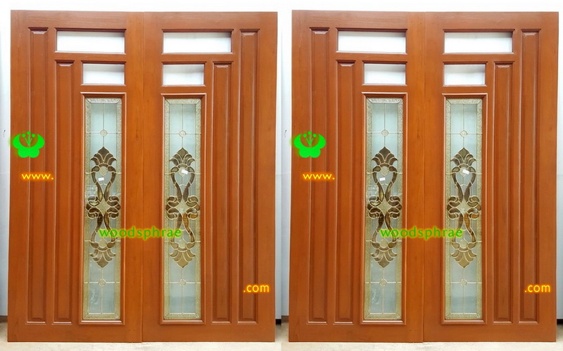 ประตูไม้สักกระจกนิรภัย ขนาด 80*200