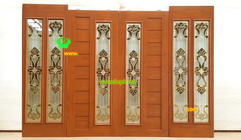 ประตูไม้สักกระจกนิรภัย