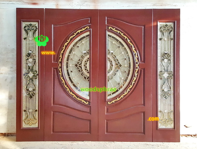 ประตูกระจกนิรภัยไม้สัก ประตูบ้านไม้สัก BBB42.2 80-200 ,40-200 B+