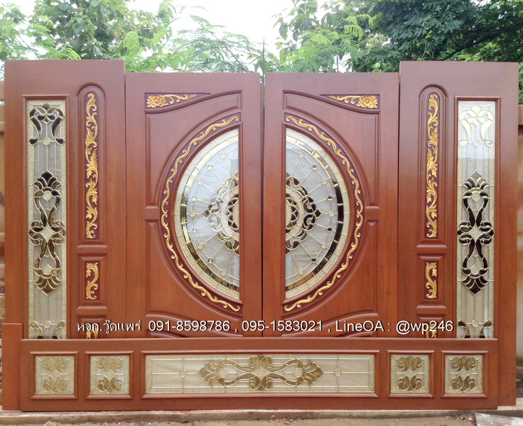 ประตูไม้สักกระจกนิรภัย