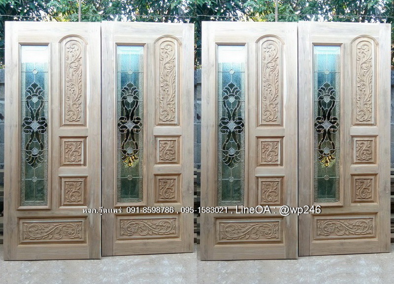 ประตูไม้สักกระจกนิรภัย