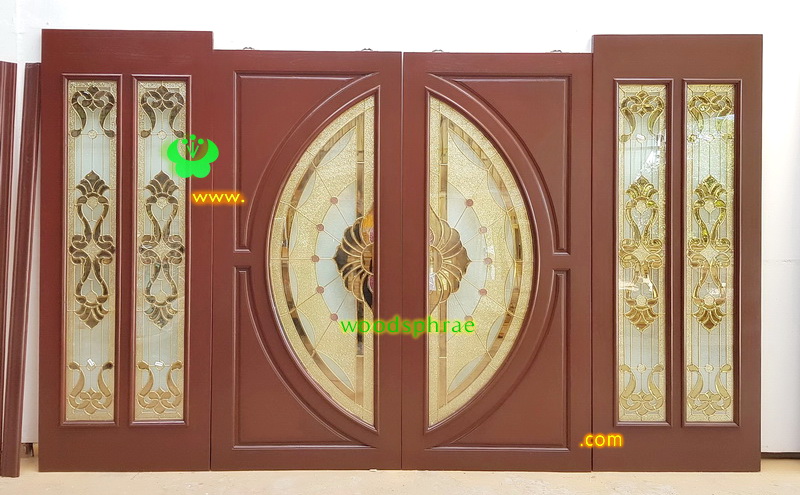 ประตูไม้สักกระจกนิรภัย
