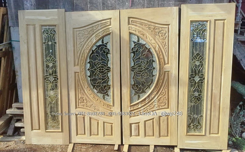 ประตูไม้สักกระจกนิรภัย