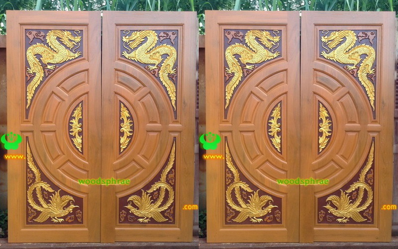 ประตูไม้สักบานคู่ ขนาด 80*200