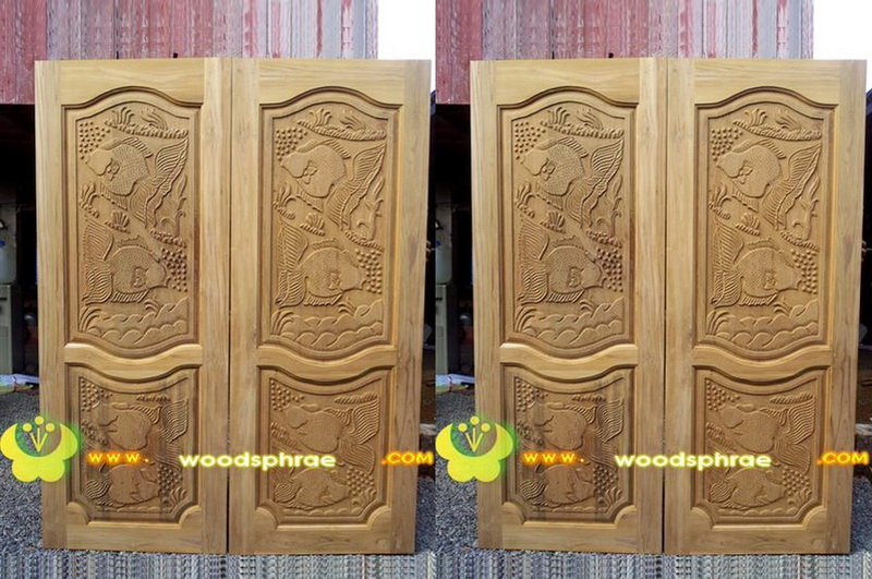 ประตูไม้สักบานคู่ ขนาด 80*200