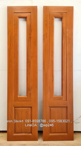 ประตูไม้สักบานเฟี้ยม (มีบานกระทุ้ง) ขนาด 50*200 ซม.