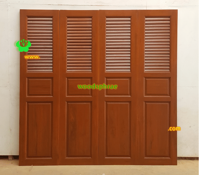 ประตูไม้สักบานเฟี้ยม A42 มีให้เลือกทั้งไม้สักอบแห้ง เกรด B+ หรือ ไม้สักเก่า รับผลิตตามแบบ สามารถปรับเปลี่ยนขนาดได้ตามต้องการ