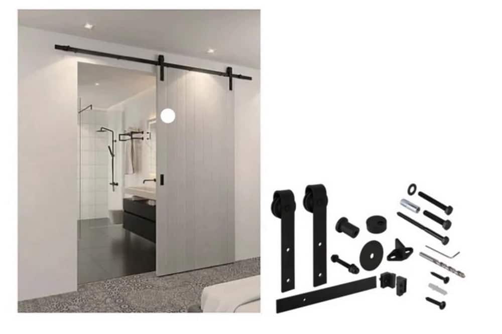 ประตูบานเลื่อนรางโชว์สไตล์บาร์นดอร์ สีเข็ม ตัดกับผนังขาว รางโชว์ สร้างจุดเด่นในห้อง