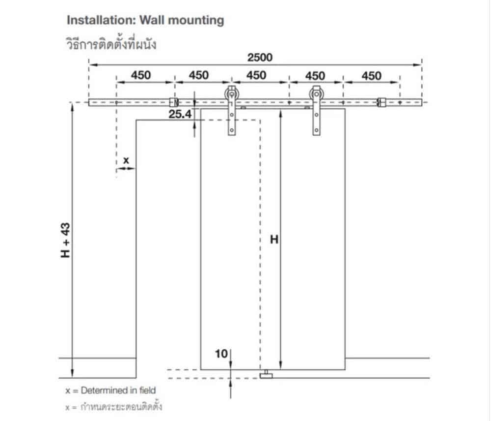 - รางจะใช้พื้นที่ในการแขวนประมาณ 6 ซม ตามตัวอย่างวงกบหนา 4.5 ซม บังใบหรือเชาะร่อง 1 ซม