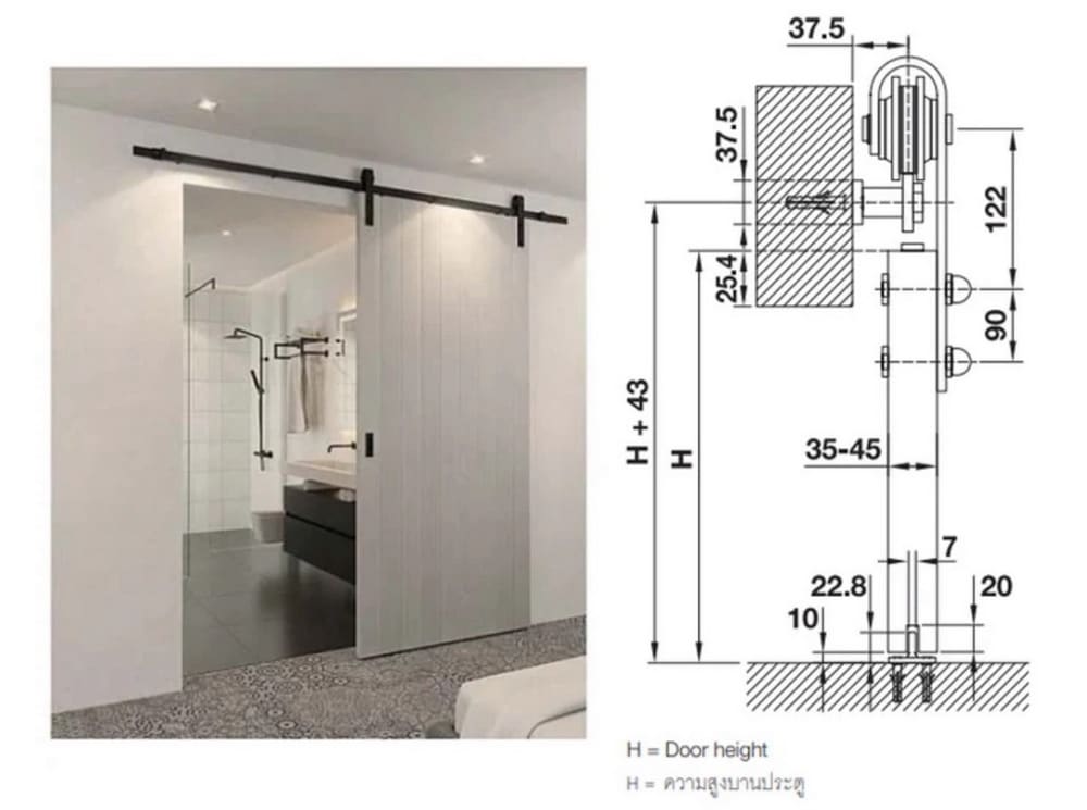บาร์นดอร์ (ประตูลูกกลิ้งสไลด์ข้าง) | 35–45 มม. | 70–200 ซม. | รางโชว์ | เน้นตกแต่ง โชว์ดีไซน์มือจับ/ฮาร์ดแวร์ |